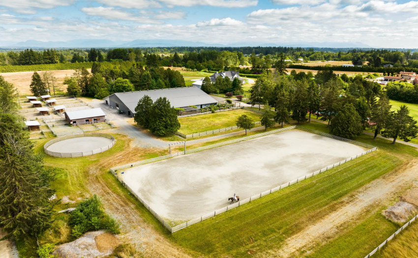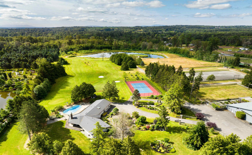 EXQUISITE FRENCH COUNTRY LIVING ON 40 ACRE EQUESTRIAN ESATE IN SOUTH LANGLEY/CAMPBELL VALLEY-STUNNING 2 YR OLD 7300 SF 2 STOREY 5 BDRM MAIN HOME WITH HUGE GOURMET KITCHEN(AND WOK KITCHEN), GREAT ROOM WITH SOARING CLEAR HARDWOOD TIMBER STRUCTURE, MEDIA RM, GYM, WINE TASTING ROOM AND LIBRARY.FIRST CLASS FINISHES WITH LIGHT CLEAR HARDWOOD FLOORS, MARBLE COUNTERS, SEP NANNY QUARTERS AND GEO THERMAL THROUGHOUT.RENNOVATED 4900SF RANCHER WITH BASEMENT AND POOL.INDOOR RIDING RING (GGT FOOTING), 26 STALLS, LOUNGE AND CARETAKERS SUITE.SEP 6 STALL BARN WITH RUNOUTS.100’x230′ SAND OUTDOOR RING.FENCED PASTURES AND SEP AREA FOR HELICOPTER TO LAND.2400SF WORKSHOP AND EQUIP STORAGE.700 YARD,3 HOLE GOLF PRACTICE COURSE WITH 3RD HOLE ON SMALL ISLAND IN MAN MADE LAKE!GATED AND COMPLETELY PRIVATE SHANGRI LA