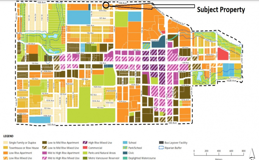 WOW!!! DEVELOPMENT OPPORTUNITY!!! This 11,618 SF lot is located in the center of all commercial properties. Zoned for 2.5 FAR (up to 6 story). Huge possibility to get mixed zoning (commercial and residential). The land is also within the Guildford Town Center – 104 Ave Official Community Plan. Golden Investment opportunity as the City of Surrey is rapidly developing this area for higher density. Call before it’s too late.