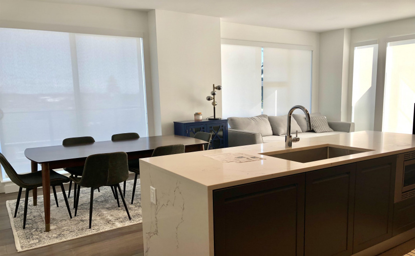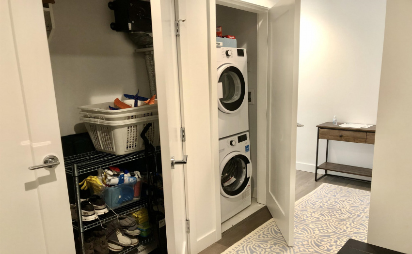 COCO Oakridge, Like NEW luxury boutique concrete building! 2 bedrooms 2 full baths; South East comer unit has huge balcony facing south east; Great for BBQ and entertaining; Air condition; Engineered hardwood floor, quartz countertop, stainless steel appliances; gas cooktop, electric wall oven, refrigerator, dishwasher. Bathroom includes marble vanity countertops, well appointed wall tiles and shower base. ENERGY STAR® washer and dryer. Integrated LED lighting. Just steps to the revitalized Oakridge community and sky-train station (Canada Line to Downtown & YVR}. Rented till mid 2023 Thanks
